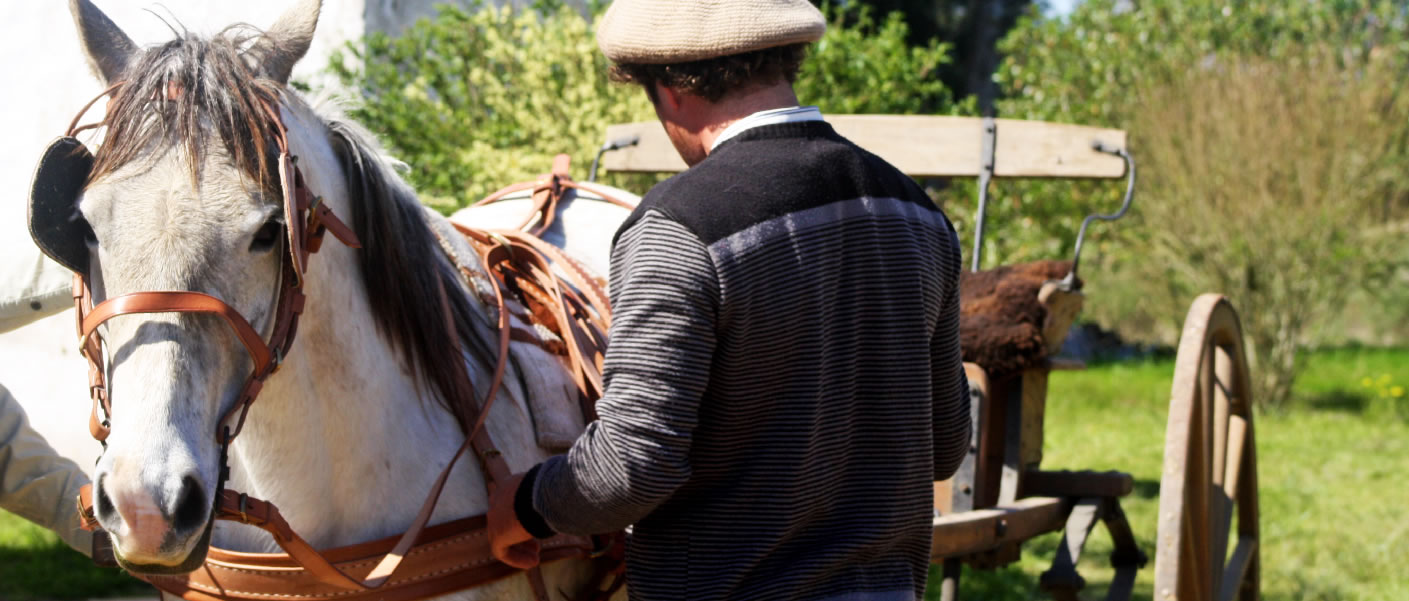 Caballos y charrets nos invitan a recorrer el sendero de los viñedos